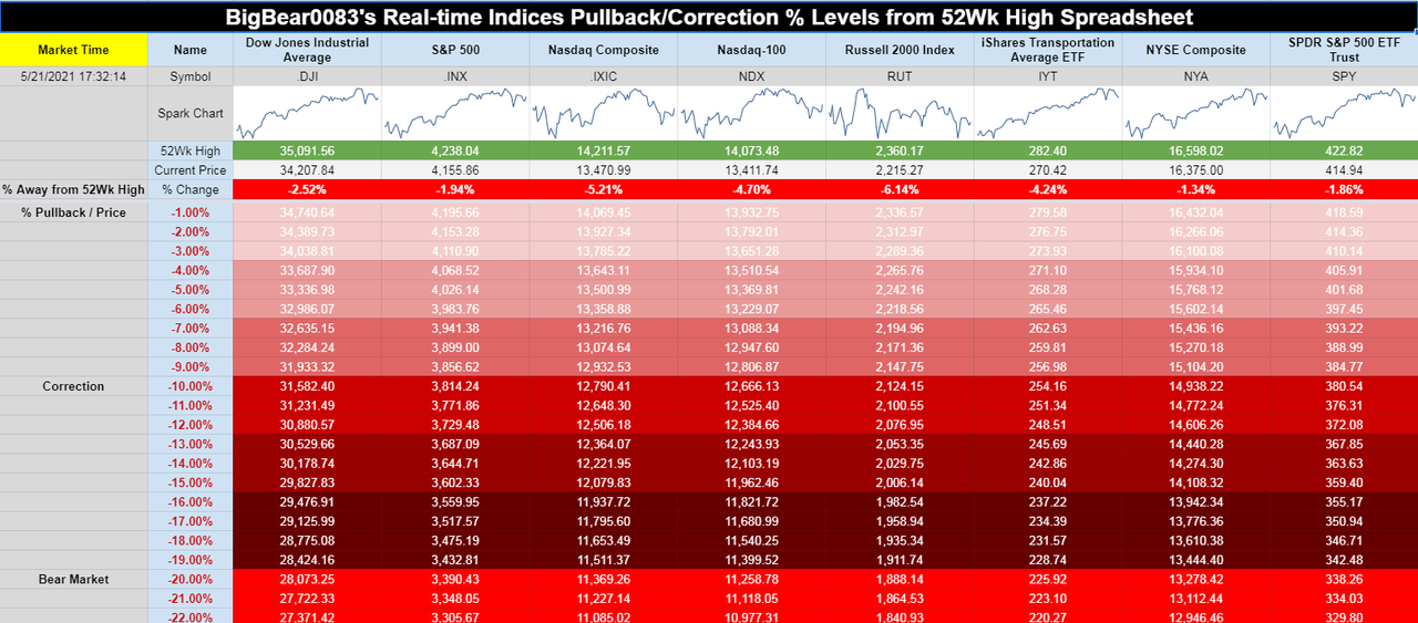 Major Indices Pullback/Correction Levels as of Friday's close: